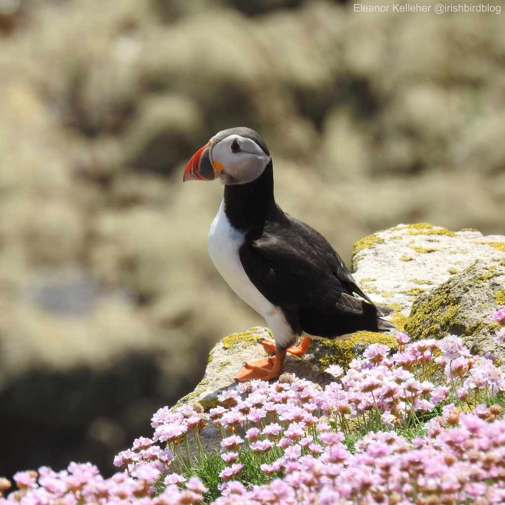 This month’s article is about one of the more famous bird visitors we get to Ireland: The Atlantic puffin (Fratercula arctica), known in Irish as Puifín or Gobachán.
