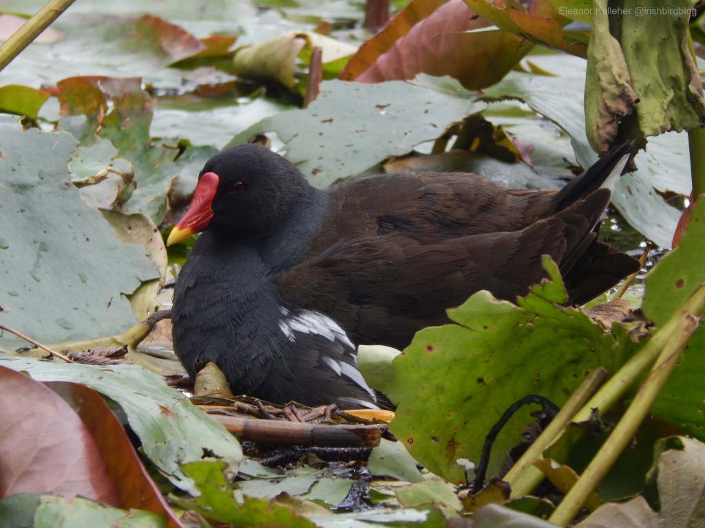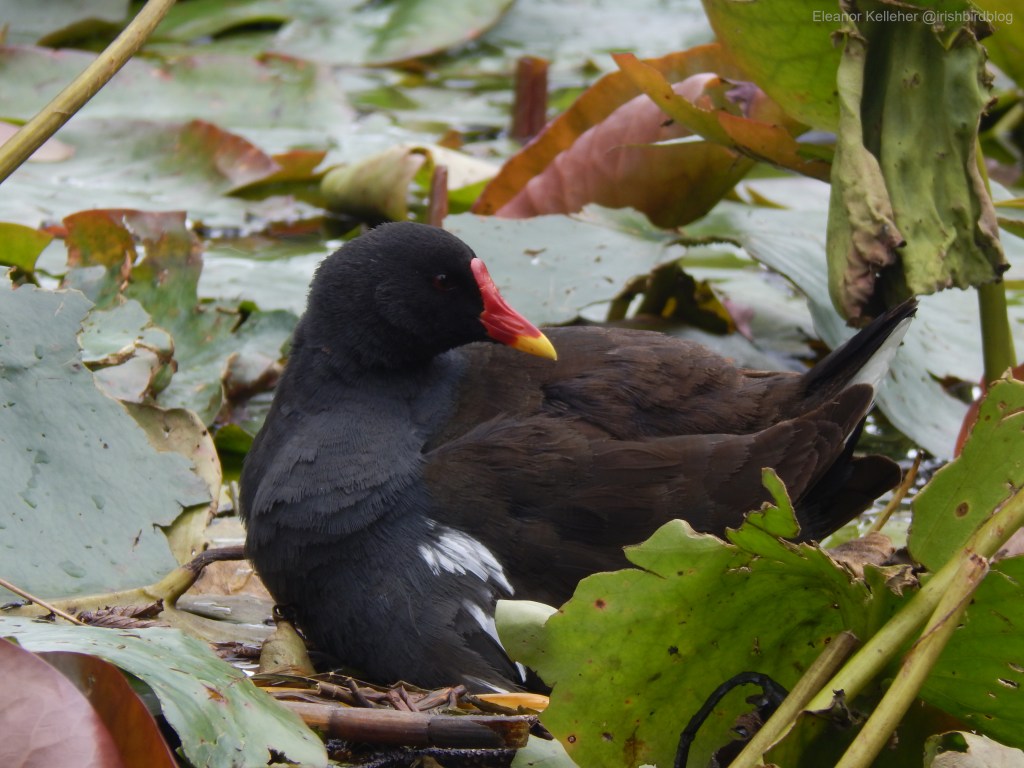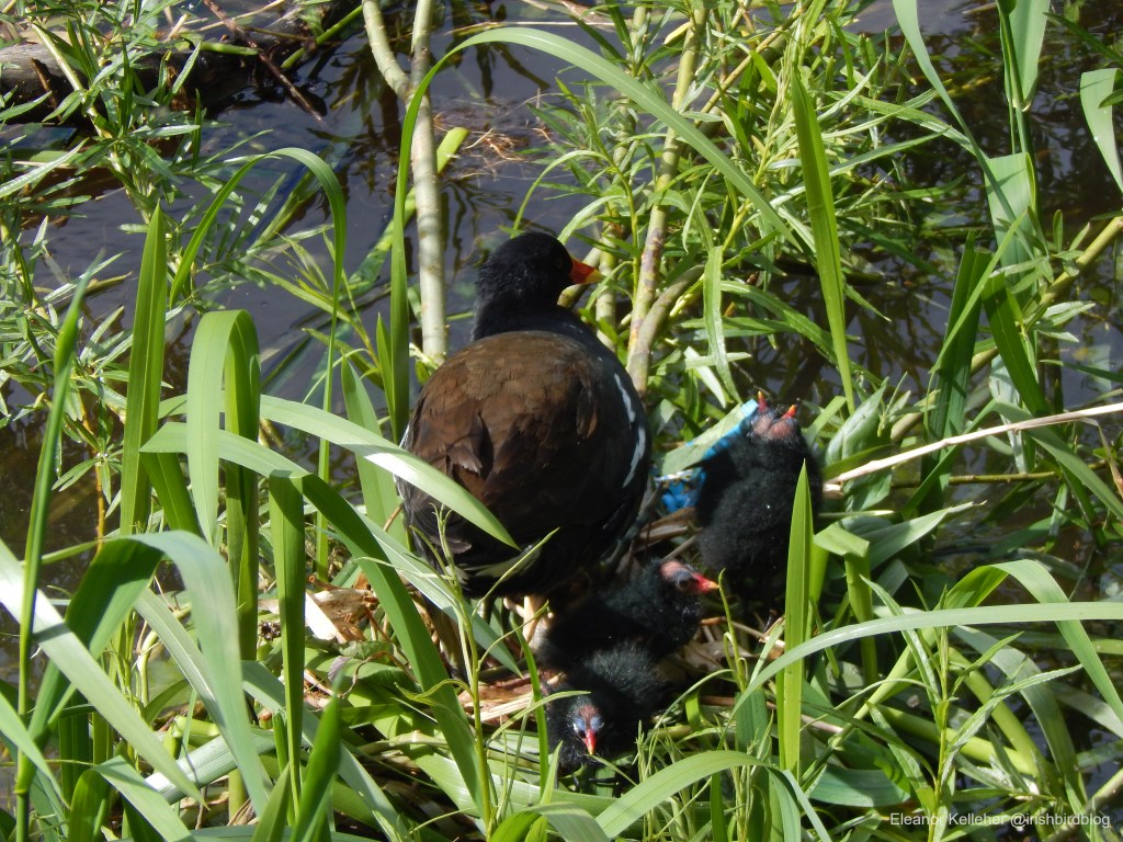 One way in which these cousins are a lot alike is that they’re both staples of Irish waterways and wetlands, particularly if those areas boast a lot of vegetation. In fact, the name moorhen comes from the old English morhen, where mor means marsh – a little marsh hen! Incidentally, both the Irish and Latin names opted to use the word “hen” to describe these birds; with the Irish name translating to “water hen” and the Latin genus name meaning “little hen”. These names have influenced the everyday nicknames these birds have earned – “marsh chicken” or, my personal favourite, “swamp chicken”.