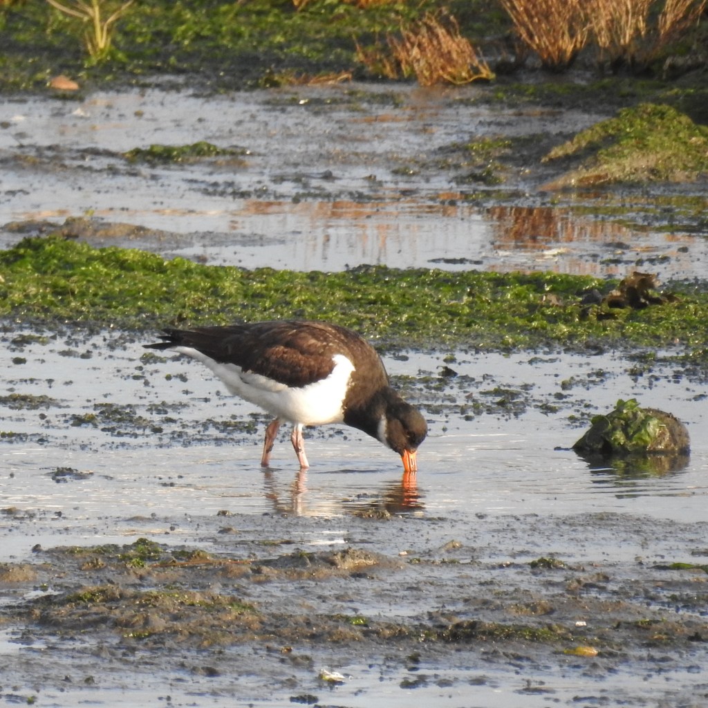 Though we’ve often seen them at the various beaches and shores that we frequent for birdwatching, I’ve also seen them on the grounds of a school. I was meeting someone and happened to hear one outside her office, and reflexively said ‘Oh, an oystercatcher!’ The person I was meeting was amazed I could tell what bird it was just from hearing the call (I’m actually pretty bad at that, the oystercatcher just has a really unique peep). We ended up talking about it for a bit so we looked out the window to try find them and eventually spotted one on the rugby pitch of the neighbouring school. On the grass you don’t really have to compete with other waders for the same food buried under the sand, so it’s a smart play on the oystercatcher’s part. Every time I’ve been back since then I always see one without fail; the school should adopt them as an official mascot.